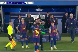 体育资讯03月19日讯 欧冠1/8决赛次回合,巴萨对阵纽卡。66分钟,巴萨连换三人,坎塞洛、莱万、费尔明被换下,奥尔莫、费兰、18岁埃斯帕特出场。