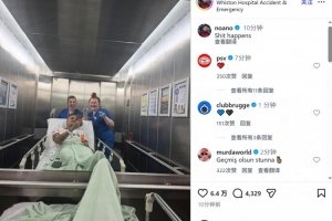 诺阿·朗更新社媒动态,晒出与两名医护人员的合照,确认已经完成手术,配文:“倒霉事常有。”