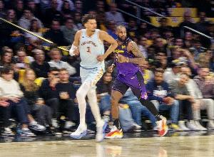 体育资讯4月3日讯 NBA常规赛,湖人客场大比分落后雷霆。