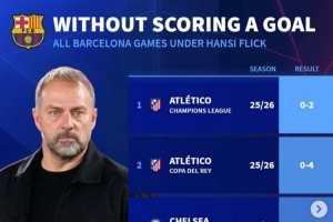 弗里克执教巴萨以来仅5场比赛被零封,其中2场是对阵马竞