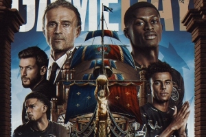 巴黎官方社媒晒出了为此役制作的海报,以海洋和巨型帆船为核心元素,恩里克携努诺·门德斯、克瓦拉茨赫利亚、杜埃、扎伊尔·埃梅里出镜